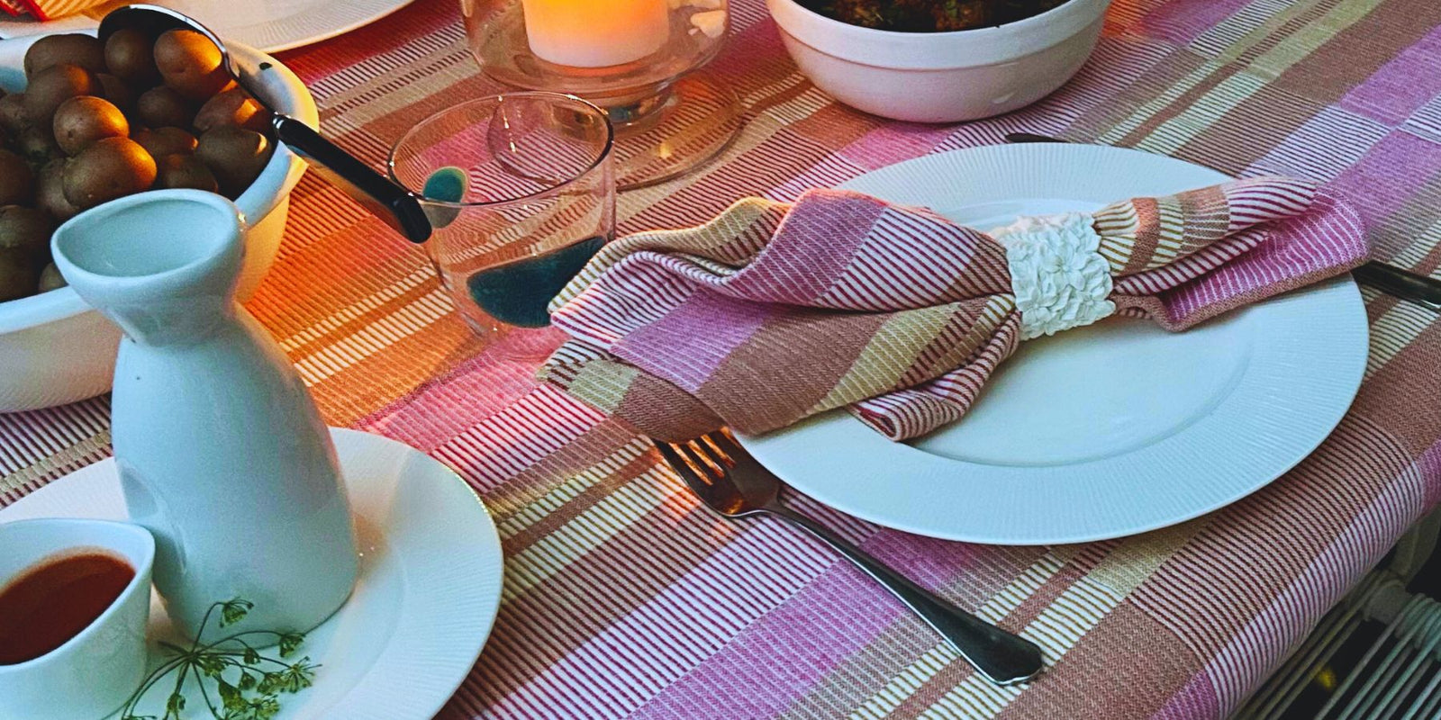 Our Grinda pillows are named after a beautiful island in the Stockholm archipelago and inspired by the flags of the boats sailing by. Each one is hand embroidered by artisans 7000 miles away in Peru.